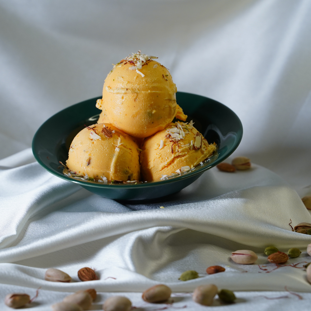 A celebration of India’s favourite festive flavours – our Badam Pista Kesar Ice Cream combines almonds, pistachios, and saffron into one creamy delight. The richness of dry fruits and the golden aroma of kesar (saffron) make it luxurious and unforgettable. Churned slowly to preserve freshness, this ice cream is indulgent yet balanced, appealing to both traditional and modern palates. A perfect choice for weddings, festivals, and family feasts, it has become a staple at celebrations. Each spoonful is a reminder of heritage, festivity, and indulgence. A true jewel in our classic collection.